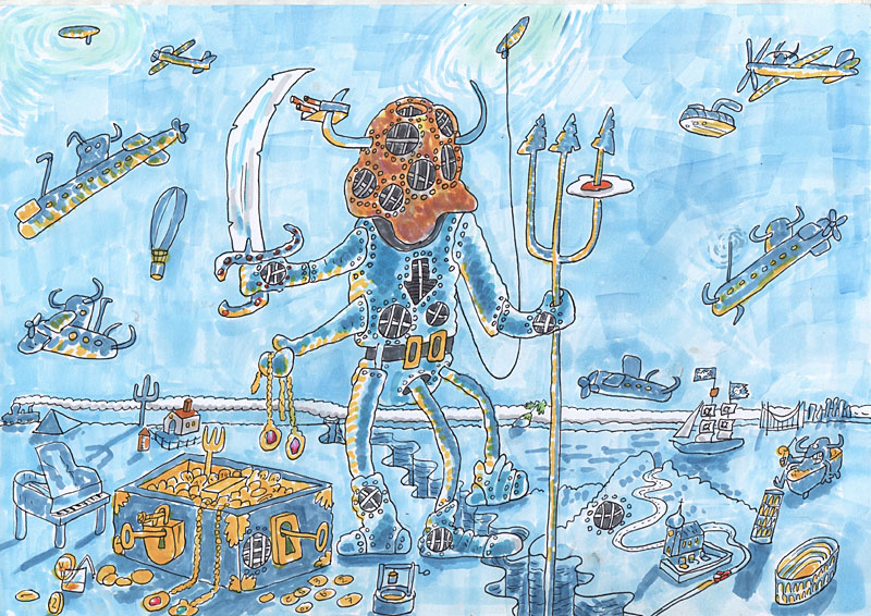 taucher und goldschatz